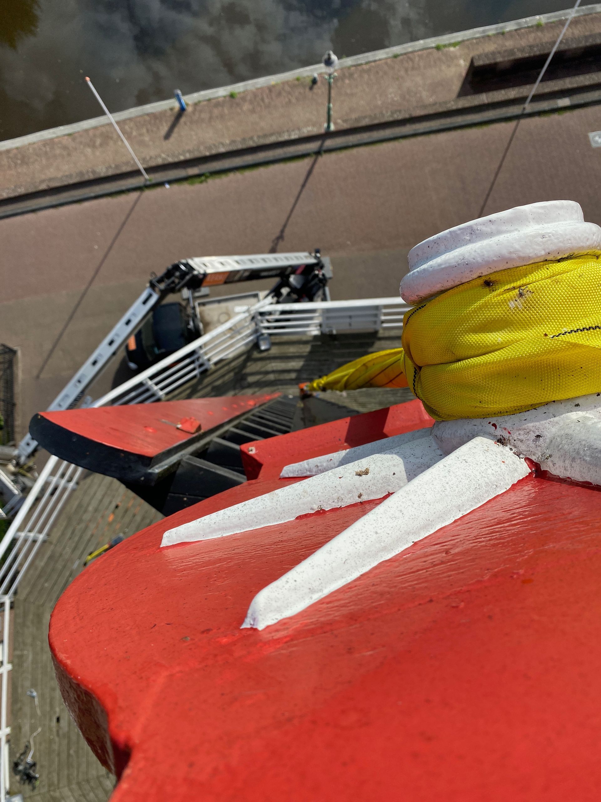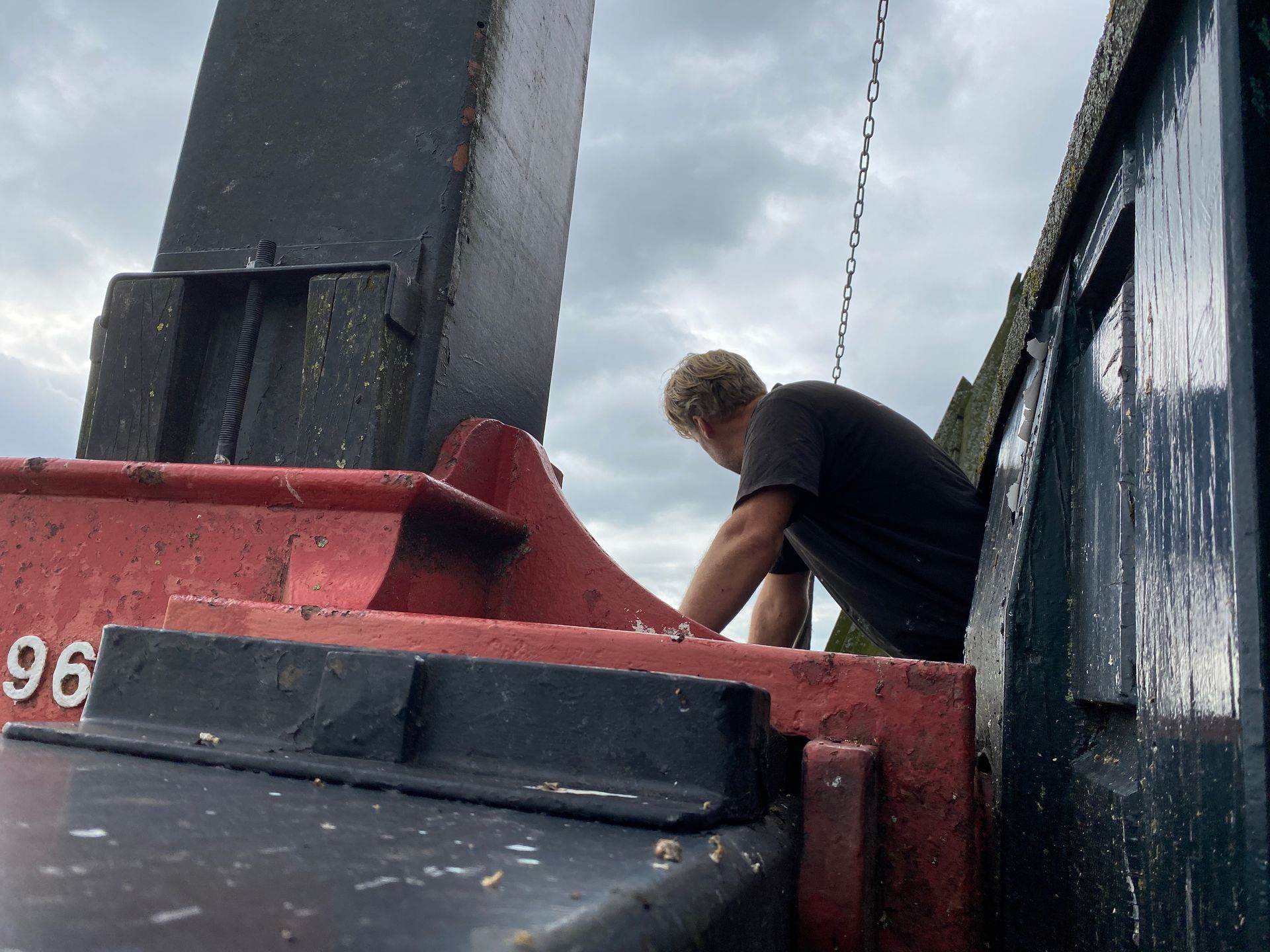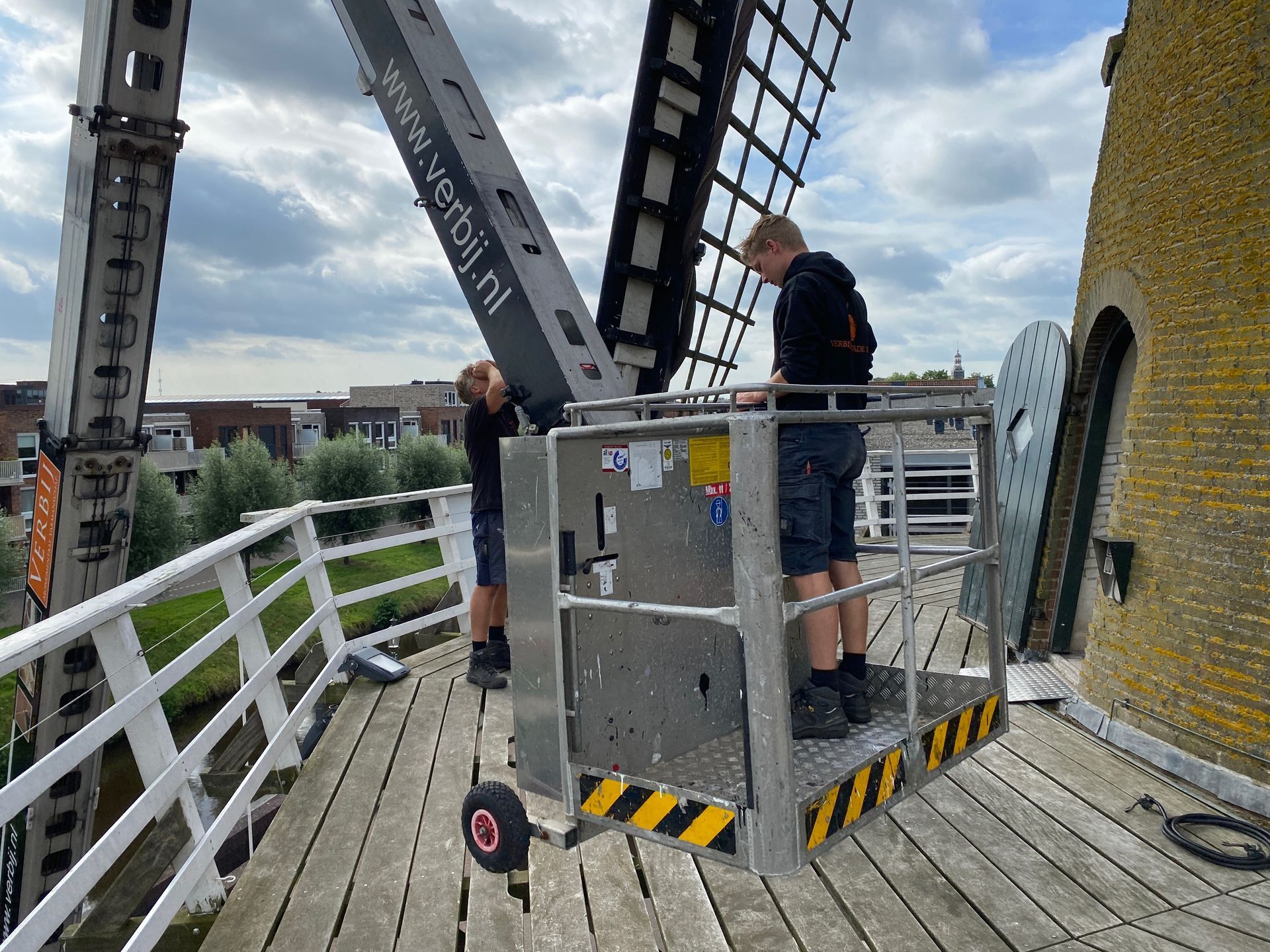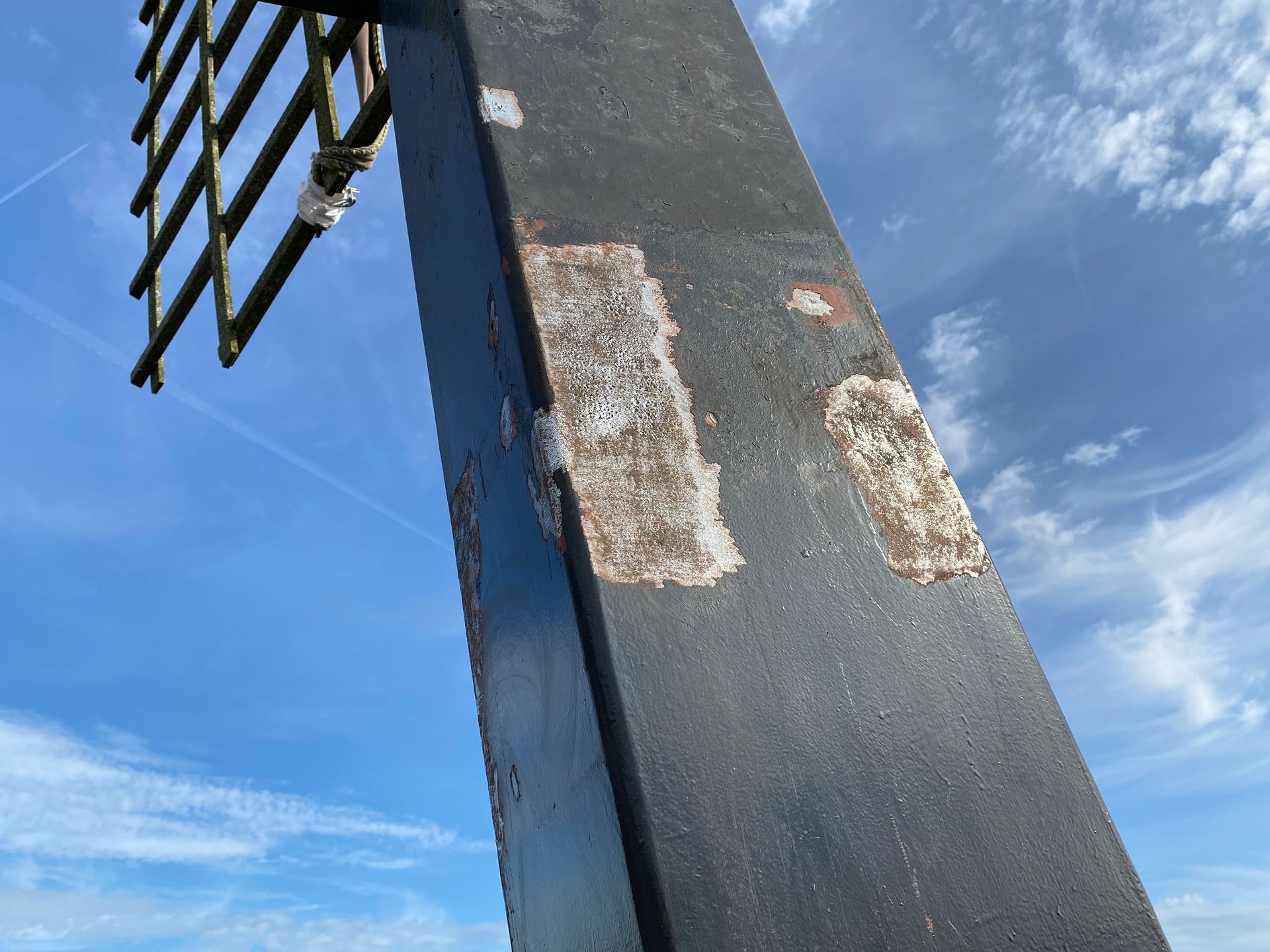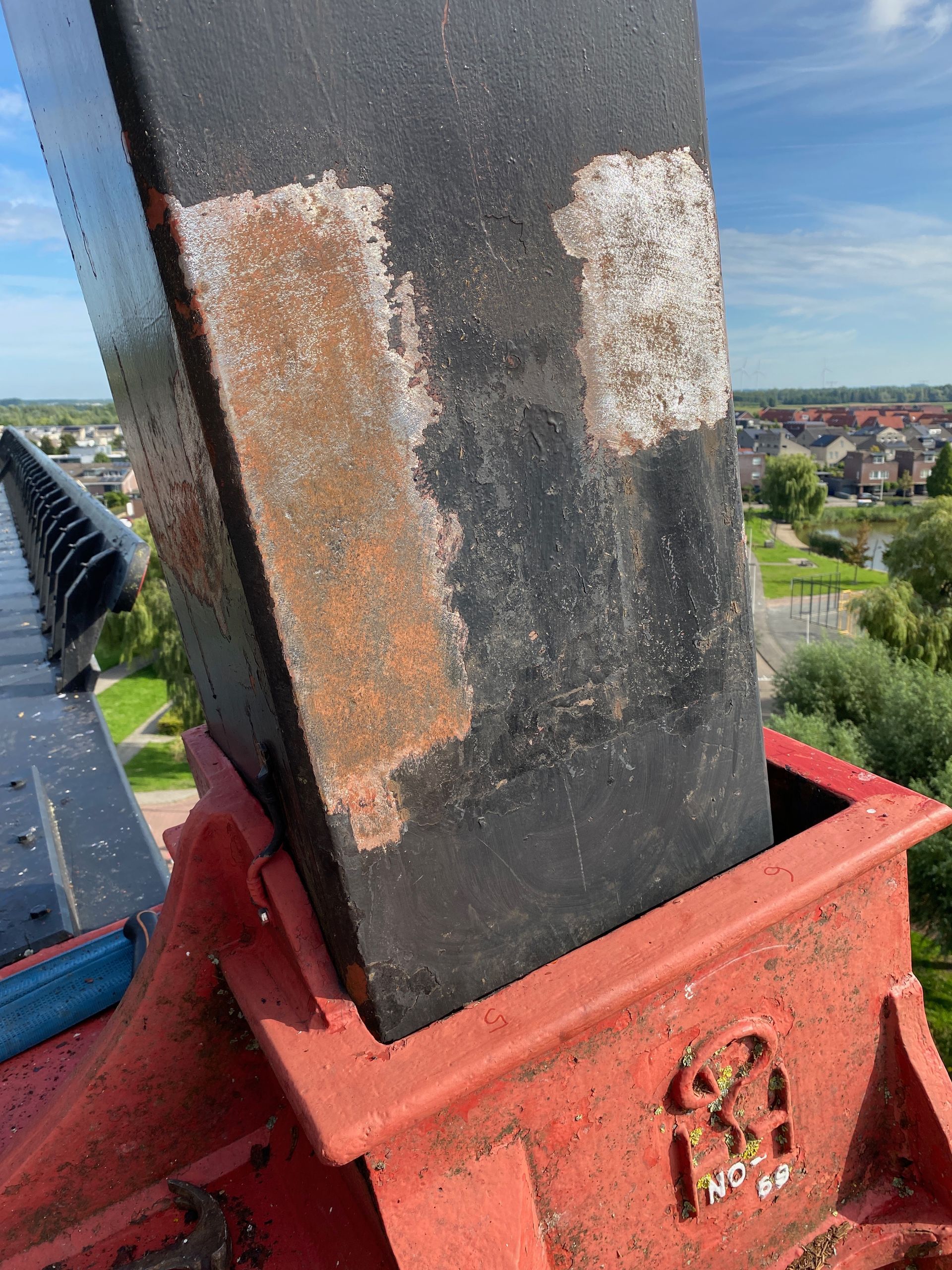 Every 10 years the blades (rods) must be "pulled out", i.e. the rod must be pulled slightly out of the axle head in order to check the part within the axle head. The millwright inspects for defects such as corrosion and cracks. Fortunately everything was fine. There was also a lot of work to be done inside the hood, the top axle was "tamped up" by about 2.5 cm because it had sunk. The top wheel had a crank, this has also been resolved. And some further adjustment work.
