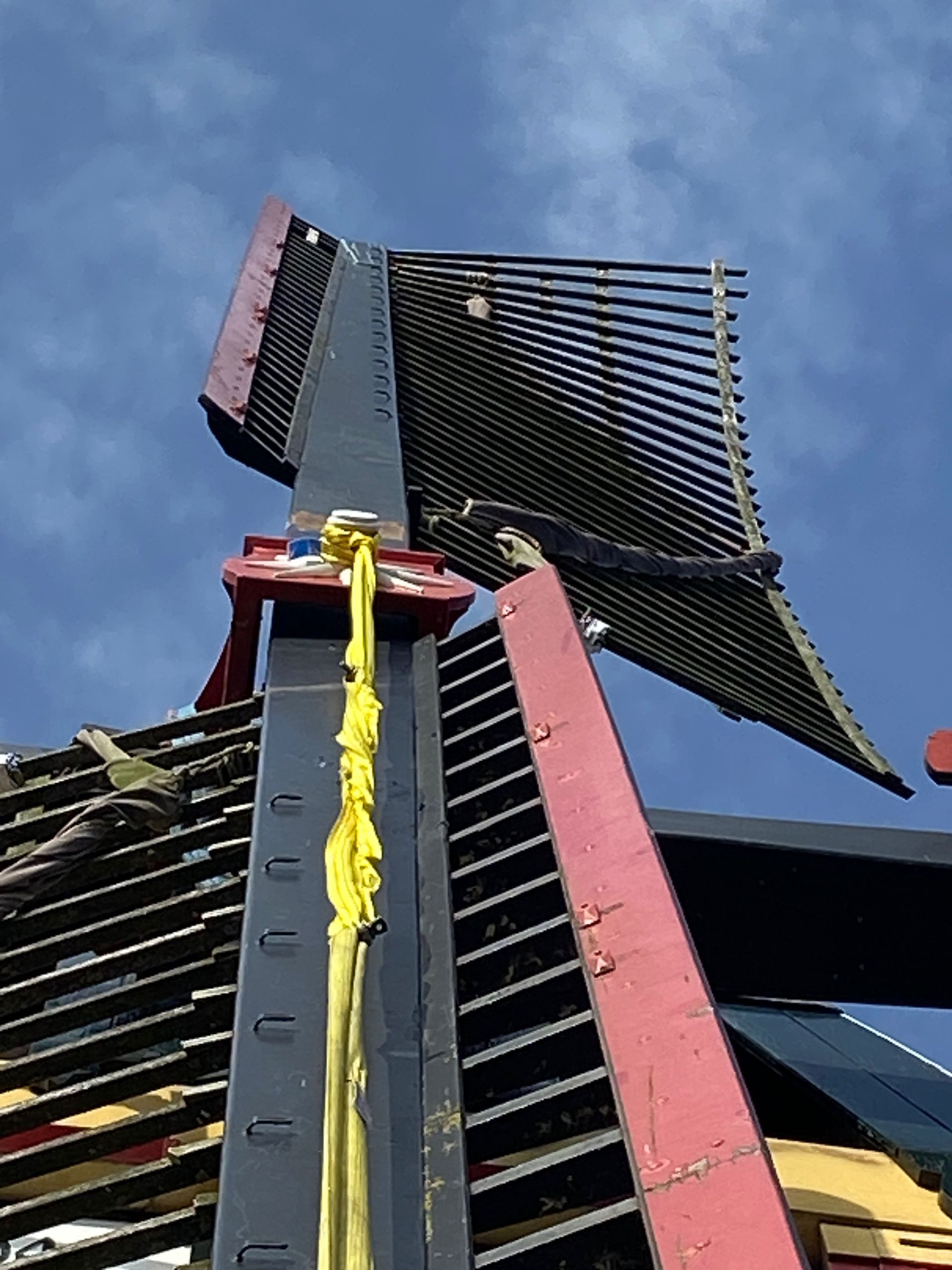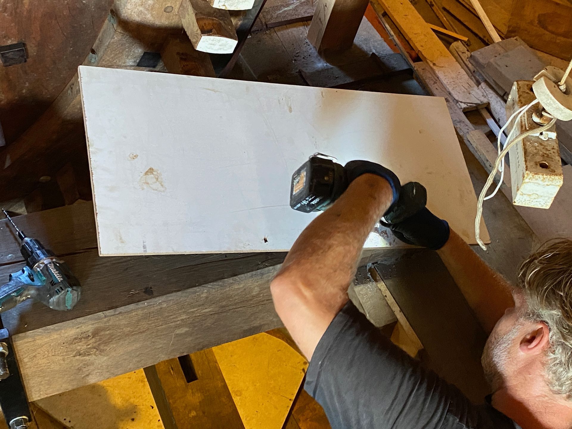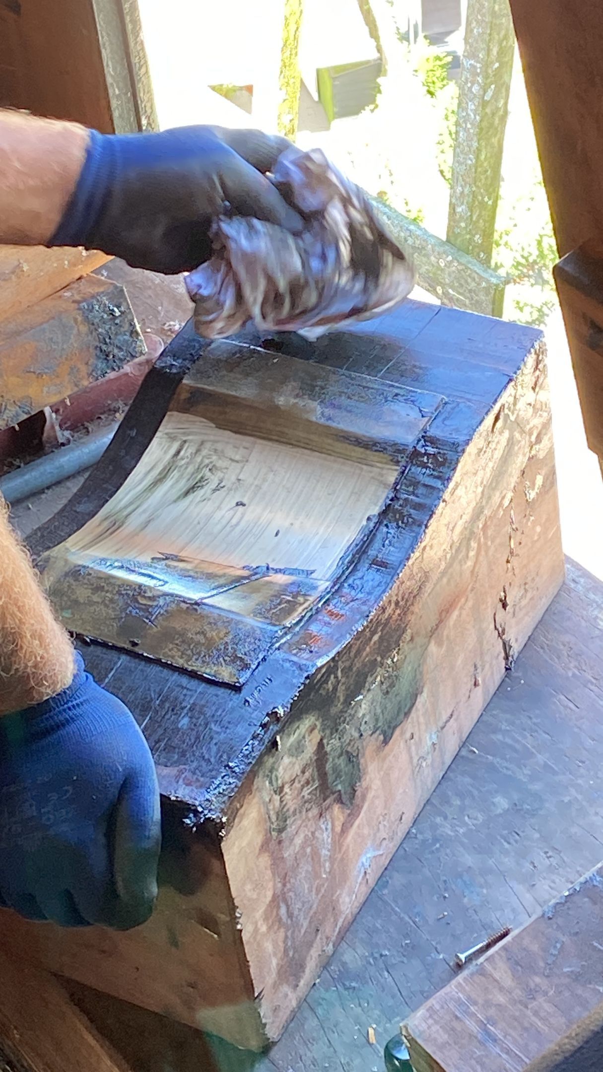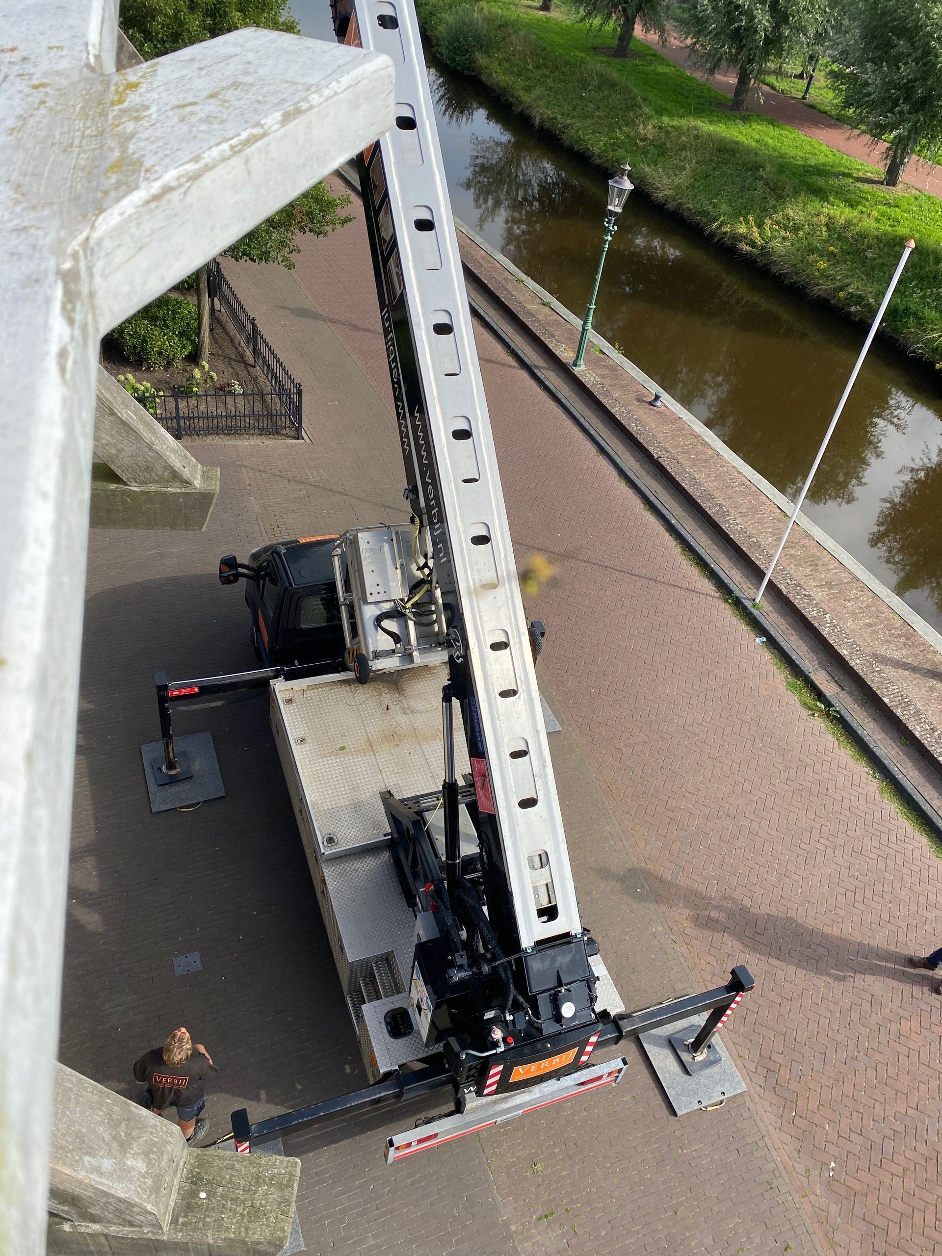 Every 10 years the blades (rods) must be "pulled out", i.e. the rod must be pulled slightly out of the axle head in order to check the part within the axle head. The millwright inspects for defects such as corrosion and cracks. Fortunately everything was fine. There was also a lot of work to be done inside the hood, the top axle was "tamped up" by about 2.5 cm because it had sunk. The top wheel had a crank, this has also been resolved. And some further adjustment work.