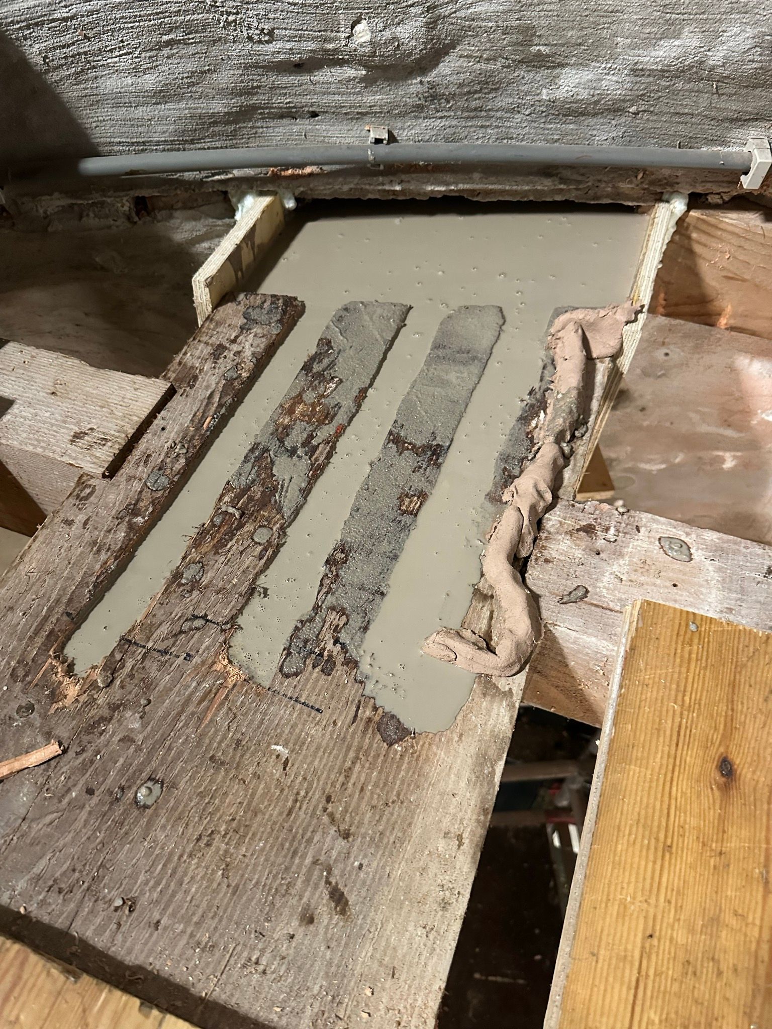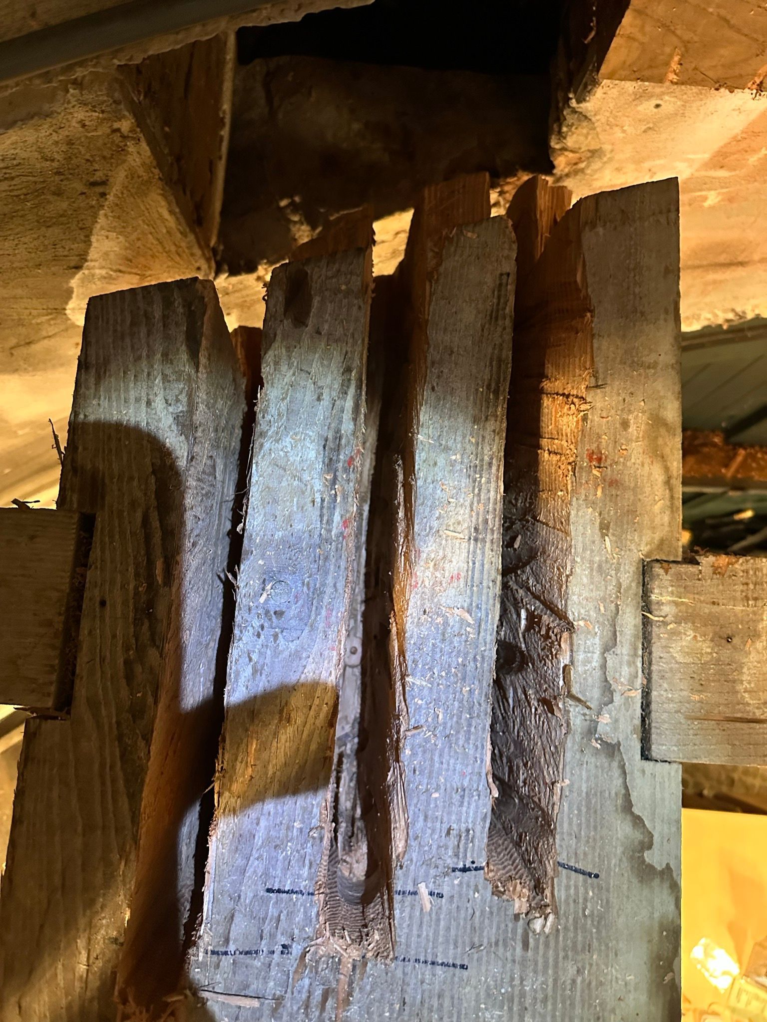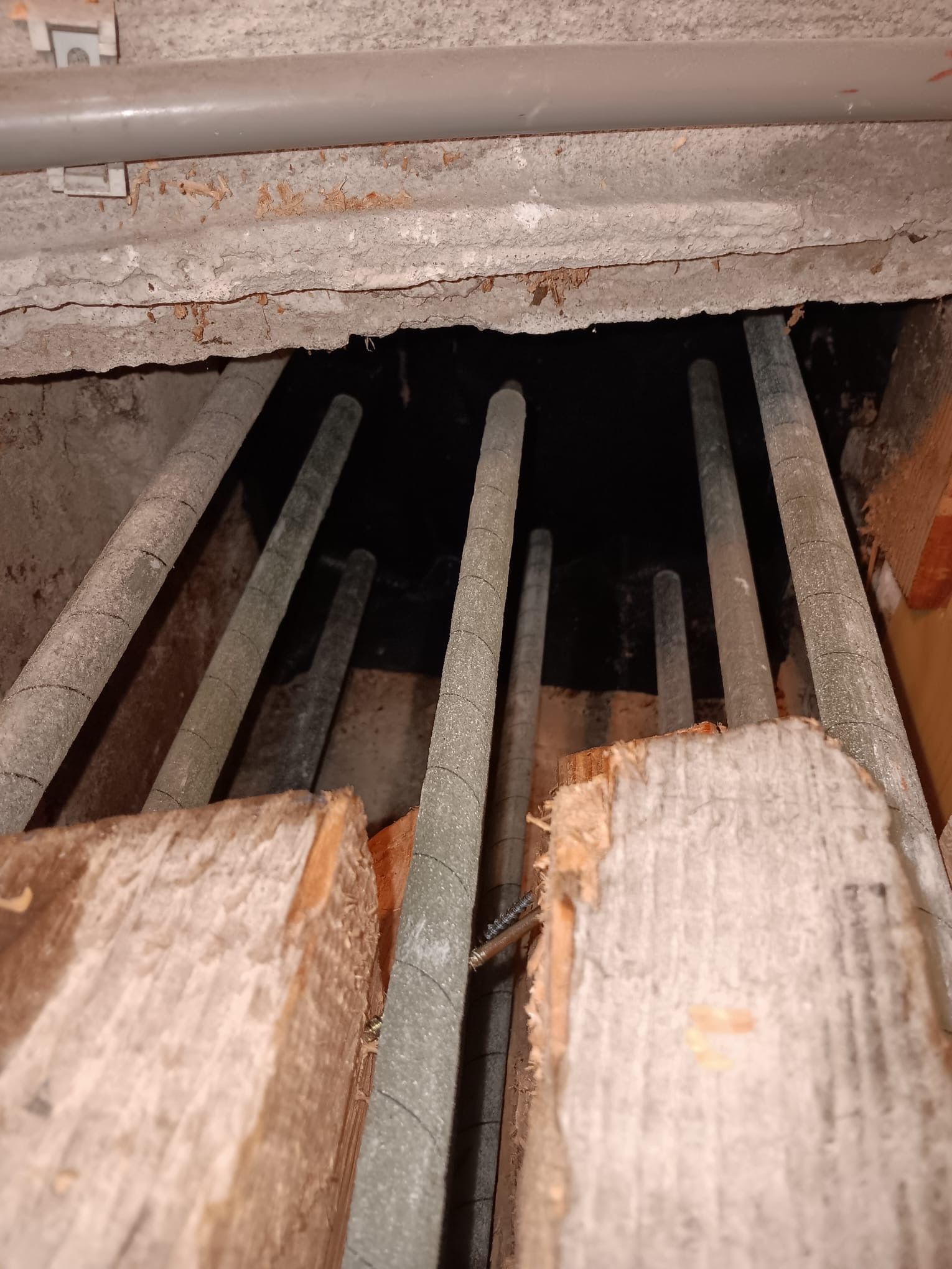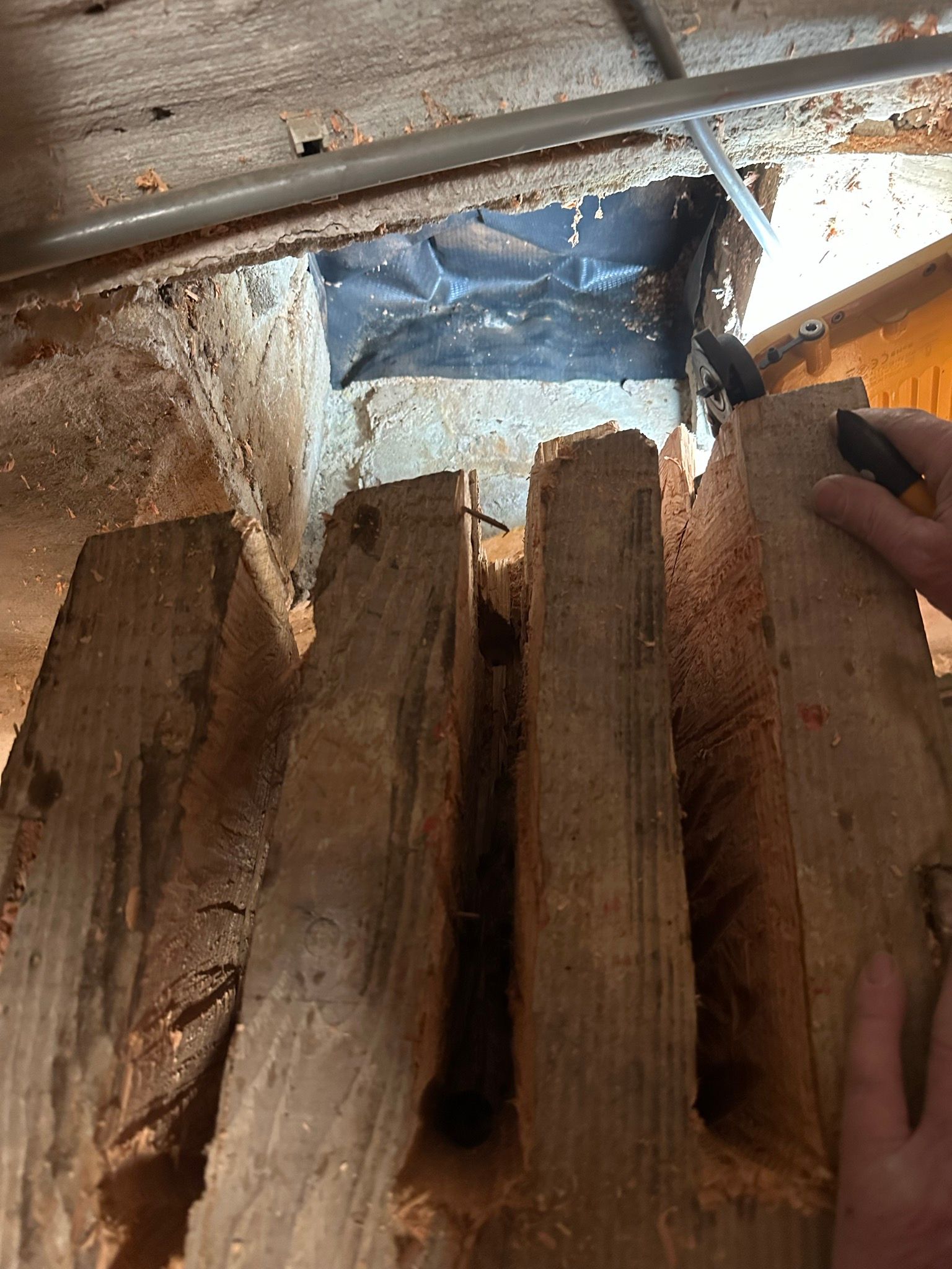 Tijdens de inspectie door de Monumentenwacht Noord-Brabant werd er een zachte plek geconstateerd in de kop van een draagbalk. Ofschoon er geen gevaar voor breuk was, is er voor de zekerheid besloten om deze kop met epoxy te repareren.