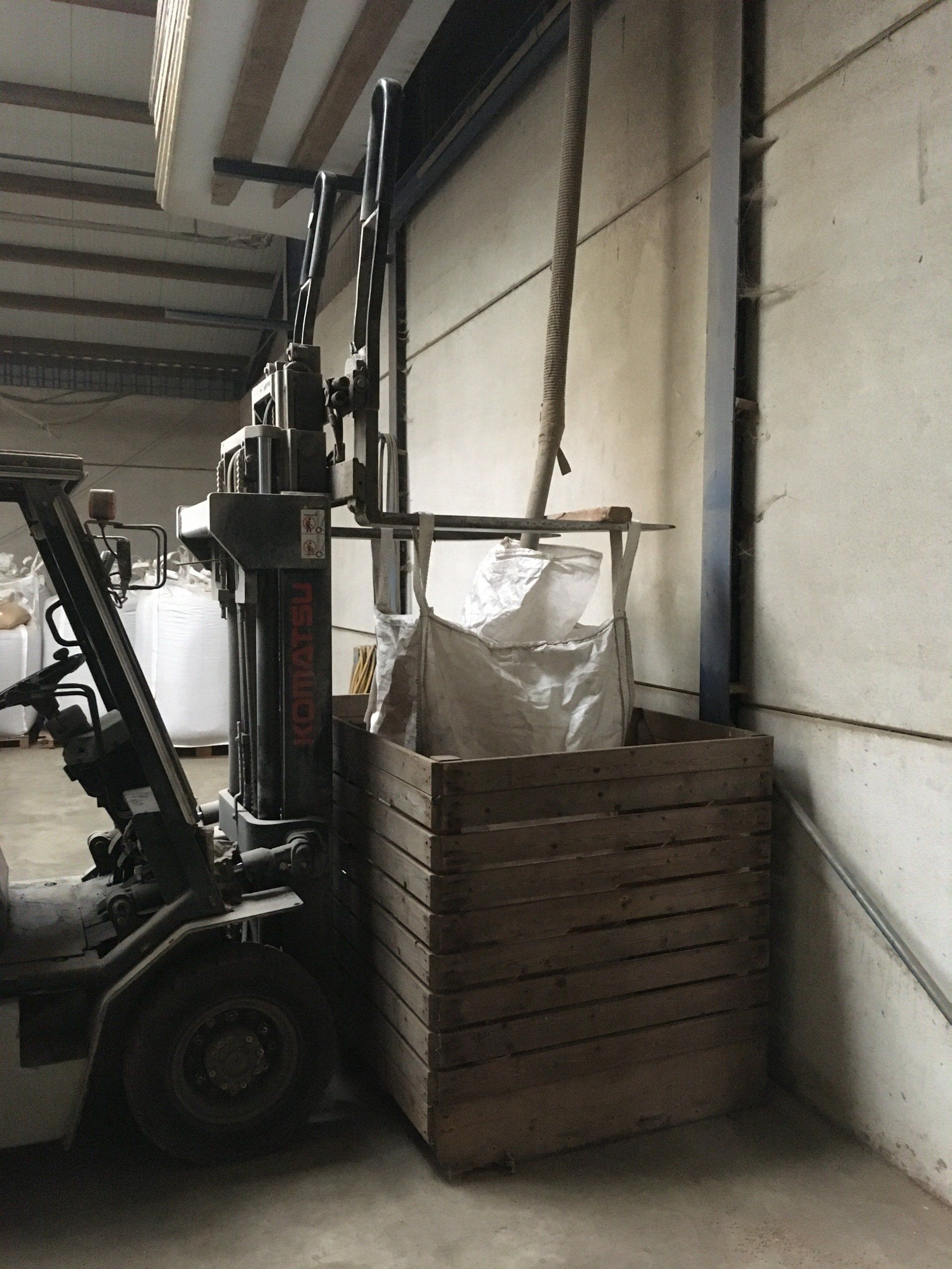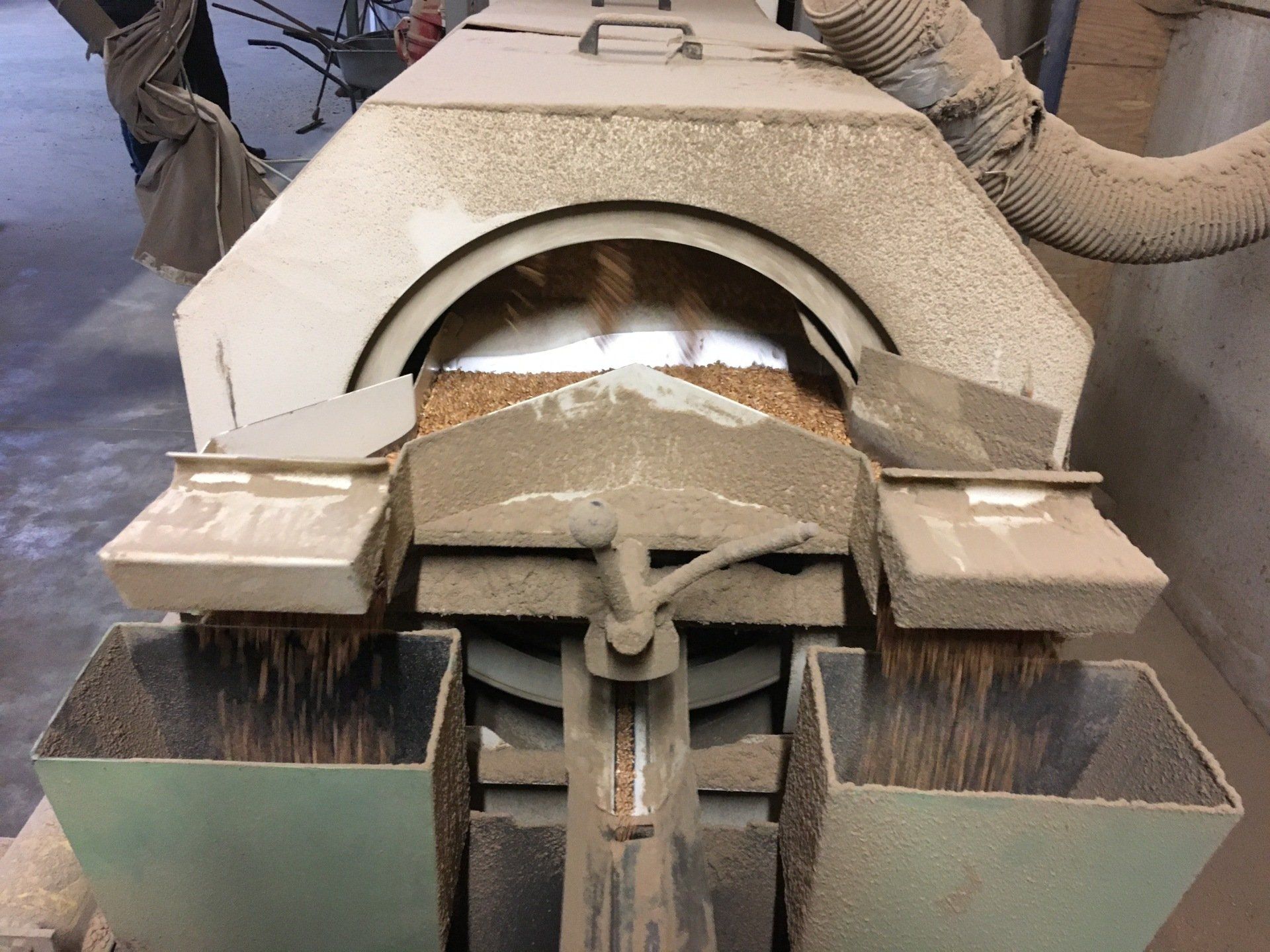 Na elke nieuwe oogst dient het graan "geschoond" te worden zodat alleen de zuivere graankorrel overblijft. Voor spelt rijden we naar Geleen, waar één van de twee fabrieken in Nederland staat die dat kan. Van de 1240 kg waarmee we begonnen bleef uiteindelijk 830 kg over, een verschil van 410 kg!!