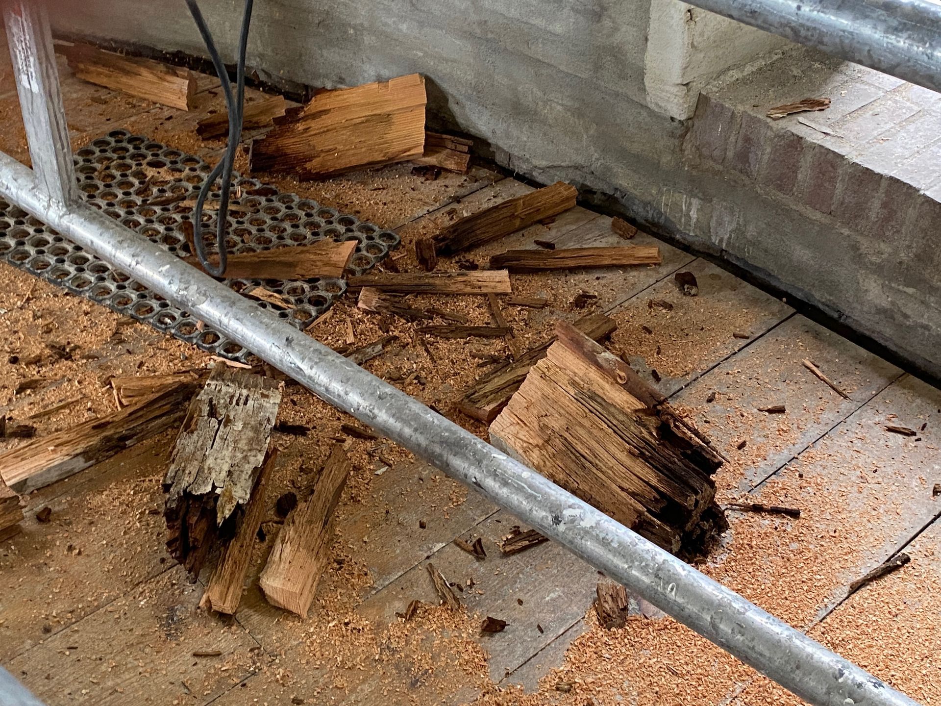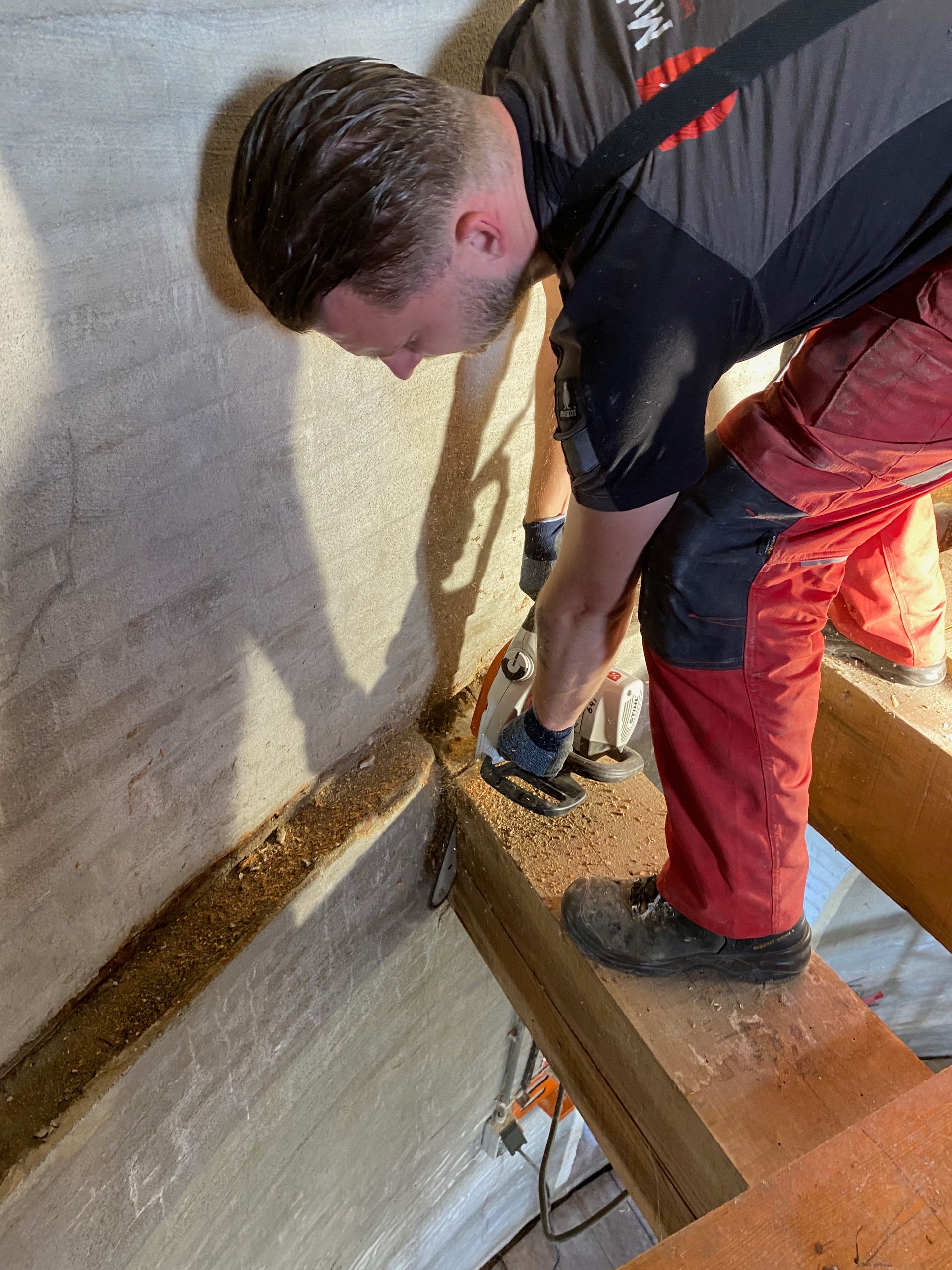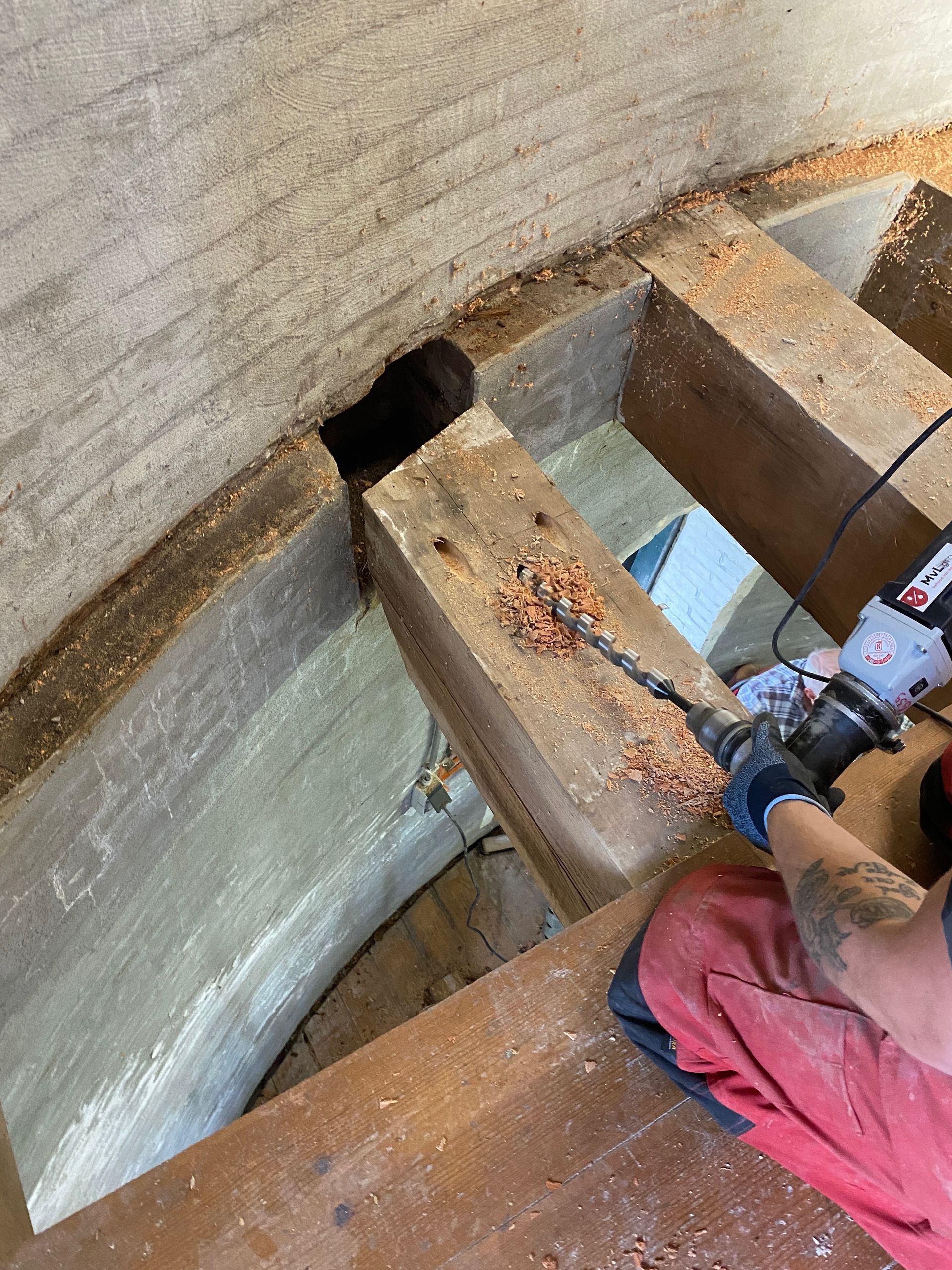 Door slecht voegwerk zijn 8 balkenkoppen aan de Zuidwestzijde van de molen aangetast. Om deze koppen efficiënt te herstellen, wordt gebruikgemaakt van epoxyhars. Hiervoor wordt de beschadigde kop afgezaagd, het rotte gedeelte wordt verwijderd, gevolgd door het maken van een bekisting, het boren van gaten voor de fiberglas-staven en tot slot het vullen van de ruimte met grind-versterkte epoxy. Na deze reparaties moet de balkenkop 7 dagen onbelast uitharden.